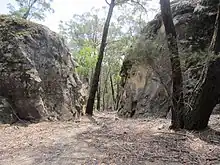 The Great South Road originally forked at Marulan, with one route going to Bungonia and the other to Goulburn.[7] This forking was in the—ultimately unfulfilled—hope that there would be a route found through the coastal escarpment via Bungonia, while the path through Goulburn headed in the direction of newly discovered grazing areas around Gunning and Yass.