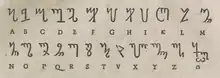 - ↑ "Theban alphabet". Omniglot. Retrieved March 6, 2023.
