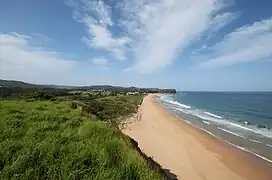 Themeda australis is the predominant grass species in the area with interspersed shrubs such as Pimelea linifolia, Banksia integrifolia, Hibbertia vestita, Pultenaea maritima, Westringia fruticosa, Acacia sophorae and Acacia myrtifolia, with some having dwarf forms.[1]
