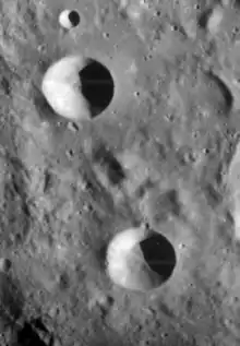 ![]() Lunar Orbiter 4 image of Theon Senior (top) and Theon Junior (bottom) | |