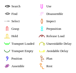 Here is an example of how therbligs can be used to analyze motion:[1]