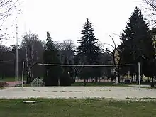 One of the school's beach volleyball courts