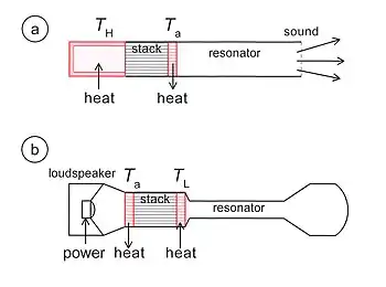 - ↑ Wheatley, John (1985). "Understanding some simple phenomena in thermoacoustics with applications to acoustical heat engines". American Journal of Physics. 53 (2): 147–162. Bibcode:1985AmJPh..53..147W. doi:10.1119/1.14100.