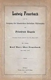 - ↑ Frederick Engels, Ludwig Feuerbach und der Ausgang der Klassischen deutschen Philosophie...Mit Anhang Karl Marx über Feuerbach von Jahre 1845 (Ludwig Feuerbach and the End of Classical German Philosophy ... With Notes on Feuerbach by Karl Marx 1845). Berlin: Verlag von J. H. W. Dietz, 1888; pp. 69–72.