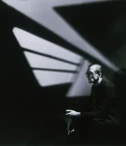 ![]() With projections of his Speedbird and Airmail icons. The portrait was taken in his thirties by Gordon Anthony.[1] | |