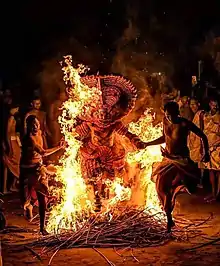 Theyyam (/t̪eːjjəm/; romanised: teyyam) is a Hindu religious ritual practiced in northern Kerala and some parts of Karnataka. Theyyam is also known as Kaḷiyāṭṭaṁ or Tiṟa. Theyyam consists of traditions, rituals and customs associated with temples and sacred groves of Malabar.[1] The people of the region consider Theyyam itself as a channel to a god and they thus seek blessings from Theyyam.