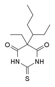 Thiotetrabarbital (INN; Thionarcex) is a drug which is a short-acting barbiturate derivative that is used as an anesthetic.[1][2][3][4][5] It has been used in veterinary medicine.[6]
