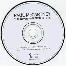 "This Never Happened Before" is a song from Paul McCartney's 2005 album Chaos and Creation in the Backyard. It was released to radio stations in the United States in 2006, peaking at #27 on Billboard's Adult Contemporary chart (see 2006 in music).[1] It was included in the soundtrack of the movie The Lake House (2006).