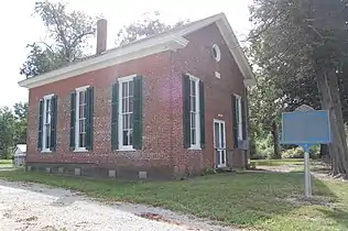 The present structure was originally built in 1825 and remodeled in 1877. It is a small one-story, three-bay by three-bay, gable-roofed, brick building in the Greek Revival style. Also on the property are a contributing privy and combination storage shed and refreshment stand, both built about 1900.