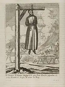 ![]() The hanging of Thomas Cottam on 30 May 1582. Matthias Tanner, Societas Jesu usque ad sanguinis et vitae profusionem militans, Prague, 1675. | |