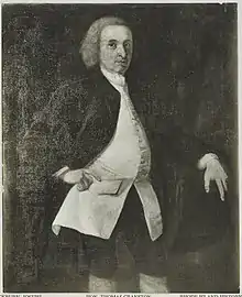 Thomas Cranston was an associate justice of the Rhode Island Supreme Court from August 1763 to May 1764,[1] and served as Speaker of the Rhode Island House of Representatives at the time that Cranston, Rhode Island was created in 1754. Historians believe either Cranston or his grandfather (or father) Samuel Cranston may be the namesake of Cranston, Rhode Island because the first page of the first town record book of Cranston bears the inscription "the gift of Thomas Cranston to the town called Cranston."[2][3]