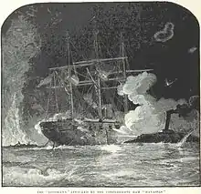 In September 1863, Cripps transferred to the USS Richmond. Still attached to Farragut's squadron, his ship and others from the Union Navy were subsequently ordered to initiate a blockade of Mobile, Alabama beginning November 1.[12] Less than a year later, he performed the actions for which he would later be awarded the U.S. Medal of Honor. Quartermaster of the USS Richmond, he captained a gun during the Battle of Mobile Bay during the morning of August 5, 1864 and,[13] while under heavy enemy fire which damaged his ship and killed several of his fellow crewmen, displayed "coolness and good conduct" as he continued firing for two hours, helping to damage the CSS Tennessee and destroy the batteries at Fort Morgan.[14]