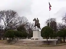 Latham's wife was a member of the Daughters of the American Revolution and the United Daughters of the Confederacy.[7][8] She was critical in the erection of the Nathan Bedford Forrest Monument in Memphis.[2] Additionally, according to Francesca Morgan, an Associate Professor of History at Northeastern Illinois University, Mary Latham's leadership position within the U.D.C. gave her an opportunity to anticipate Mary Ritter Beard's feminism as she "celebrated married women's property rights, white women's admission to state universities, women's establishment of "industrial and reform schools" for girls, and their community work that resulted in public libraries, public drinking fountains for man and beast, police matrons, public parks, and clean streets"."[9]