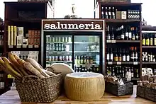 In June 2012, Salumeria opened next door to central kitchen.[25] A long time dream of Thomas, he describes the space as ‘the larder of flour+water’.[26] Salumeria offers house-cured meats, cheese, pasta by the pound from flour+water,[27] olive oils, vinegars, etc. The sandwich selection at salumeria received praise from critics and public alike since its opening, including The Wall Street Journal,[28] San Francisco Magazine,[29] Refinery 29,[30] Tasting Table[31][32] and others.
