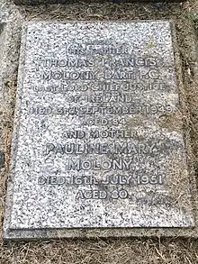 Molony retired to England but was made Vice-Chancellor of Trinity College Dublin in 1931. Molony died on 3 September 1949 and is buried in Gap Road Cemetery Wimbledon.