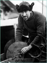On board ship he proved unpopular with the rest of the crew – he had a surly, condescending manner and was undisguisedly lazy. Having been labeled as somewhat of a bully amongst the crew, Shackleton referred to him privately as the "Old Lady" during the expedition.[4] Nevertheless, he proved to be an efficient storekeeper. He had a keen interest in physical fitness and took his bicycle on the expedition; after the ship became trapped in the ice he frequently took cycling trips on the ice. On one occasion, he spent over two hours on his bike outside the ship, and Shackleton was sufficiently worried to send a search party to look for him.[5] Shackleton ordered him not to leave the ship unaccompanied after he became lost while searching for food, and encountered a fierce leopard seal. His cries brought second in-command Frank Wild out of his tent, who shot the leopard seal at a distance of 10 m (30 ft) from Orde-Lees.[6]