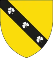 The family bore arms, Or, on a bend sable, three trefoils slipped argent, said by French 389 to be those of Quiney of Staffordshire, from whom they may have come.