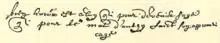 He was a man of some education, with knowledge of French and calligraphy. In signing his accounts for 1621 and 1622 as chamberlain he decorated them with a couplet in French from a romance by Mellin de Saint-Gelais.[2][7] Quiney writes "Bien heureux est celui qui pour devenir sage, Qui pour le mal d'autrui fait son apprentissage" but the original is "Heureux celui qui pour devenir sage, Du mal d'autrui fait son apprentissage". The original translates into English as "Happy is he who to become wise, serves his apprenticeship from other men's troubles" but Quiney's version "... is ungrammatical and without sense".[10][11][12]