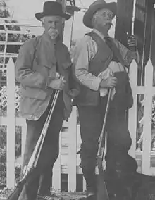 Hinde was sick for a few days before dying from "winter fever."[14] Hinde is buried in Sandhill Cemetery in Mount Carmel next to his daughter Belinda and his second wife, Sarah Doughty Cavileer Neal. The wrought iron fence surrounding their graves was paid for by his son Charles in the early 1900s.[57] Since he died at a relatively early age and his wife died shortly after him, his orphaned children were forced to live with other relatives or fend for themselves. Martha married Judge Charles H. Constable; together they looked after many of her younger siblings until they married or found work. Her brother Charles Hinde became a successful businessman and riverboat captain. One of Captain Hinde's accomplishments was investing in the Hotel del Coronado in San Diego, California. Hinde's grandson, Frederick Zimmerman, built the Grand Rapids Hotel on the Hinde family farm in Mount Carmel near the Grand Rapids Dam and Hanging Rock.