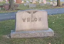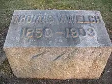 T.V.Welch was originally buried in the cemetery of St.Mary's of the Cataract in Niagara Falls. On May 11, 1936 his remains were moved, along with others, to the Gate of Heaven Cemetery[30] in Lewiston, New York. His remains rest with those of his family at the South East corner of Section 3 of the cemetery.