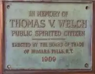 Thomas Vincent Welch (October 1, 1850 – October 20, 1903) was a New York State Assemblyman and served as the first Superintendent of the New York State Reservation at Niagara, holding the post for 18 years. As a member of the New York State Assembly, Welch was a key player in the efforts to acquire the lands adjoining Niagara Falls, and to make them free for all to view.