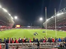 Thomond Park is a stadium in Limerick in the Irish province of Munster. The stadium is owned by the Irish Rugby Football Union[4] and has Munster Rugby, Shannon RFC and UL Bohemian RFC as tenants. Limerick FC played home games in Thomond Park from 2013 to 2015 in the League of Ireland while the Markets Field was being redeveloped. The capacity of the stadium is 25,600 following its large-scale redevelopment in 2008.[3]