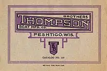 The Thompson Brothers Boat Manufacturing Company of Peshtigo, Wisconsin was a manufacturer of pleasure boats and canoes. Founded by brothers Peter and Christ Thompson in 1904,[1] the company became prominent in the field and built boats for nearly one hundred years.[2] The Thompson Antique & Classic Boat Rally celebrates the company's history with a boat show every other year[3] and in 2013 the Thompson Brothers canoe was celebrated at the Annual Assembly of the Wooden Canoe Heritage Association.[4]