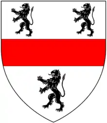 Arms of Thorne: Argent, a fess gules between three lions rampant sable[4]