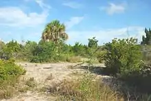 Uplands have been colonized by several native plant species, including Florida swamp privet (Forestiera segregata (Jacq.) Krug & Urb.), salt bush (Baccharis halimifolia L.), cabbage palm (Sabal palmetto (Walter) Lodd. ex Shult. & Schult. f.), wax myrtle (Myrica cerifera L.), and strangler fig (Ficus aurea Nutt.).