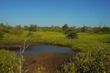 Native wetlands are dominated by red, black, and white mangroves.[7] Succulent marsh contains saltwort, annual glasswort, perennial glasswort,[8] sea blight,[9] and shoreline seapurslane.