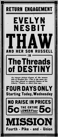 Threads of Destiny is a lost[1] 1914 silent drama film directed by Joseph W. Smiley and starring Evelyn Nesbit, in her feature debut. It was produced by the Lubin Manufacturing Company and distributed by General Film Company.[2][3]