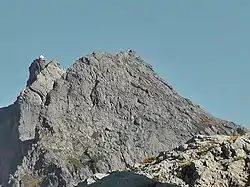 Lookout is white building on left peak
