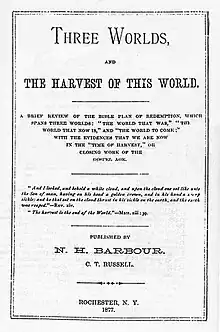 - ↑ Barbour, Nelson H. (1877). Three Worlds, and the Harvest of This World (PDF). Rochester, New York: Nelson H. Barbour and Charles Taze Russell. OCLC 41016956. Retrieved 2015-04-03.