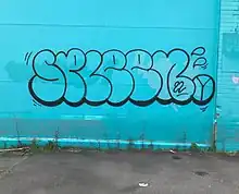 Throw ups[lower-alpha 1], or throwies, are a form of graffiti that fall between tags and pieces in complexity.[1] The name comes from the way they are designed to be "thrown" onto a surface as quickly as possible. They are almost always done with aerosol paint.[2]