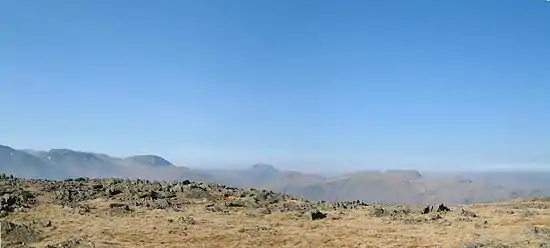 ![]() Thunacar Knott seen from Pavey Ark; the fell summit is the insignificant point on the moorland in the picture centre | |