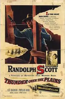 Thunder Over The Plains is a 1953 American Western film directed by Andre de Toth and starring Randolph Scott with Lex Barker, Phyllis Kirk, Henry Hull, Elisha Cook, Jr. and Fess Parker. It was Barker's first film after starring in five Tarzan pictures.
