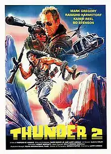 Thunder Warrior II (Italian: Thunder 2) is an Italian action film written and directed by Fabrizio De Angelis. It is the sequel to the film Thunder Warrior.[1] The film is about a native American sheriff named Thunder, who is transferred to a small town in the desert, and finds out collusion between organised criminals and corrupt officials.