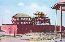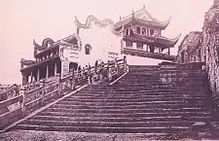 Tianxin Pavilion (simplified Chinese: 天心阁; traditional Chinese: 天心閣; pinyin: Tiānxīn Gé) is an ancient Chinese pavilion located on the ancient city wall of Changsha, Hunan.[1] The pavilion was first established in the 14th century, at the dawn of Ming dynasty (1368–1644), but because of war and natural disasters has been restored and renovated numerous times since then. The present version was completed in 1984. Tianxin Pavilion is composed of three pavilions, the three–stories main pavilion and the two–stories auxiliary pavilions. The two sides are connected with a long corridor. Alongside the Yueyang Tower, Pavilion of Prince Teng, Yellow Crane Tower, Stork Tower, Penglai Pavilion, Daguan Pavilion, Yuejiang Tower, Xi'an Bell and Drum Tower and Tianyi Pavilion, it is one of the "Ten Famous Chinese Historical and Cultural Towers and Pavilions" (十大中国历史文化名楼).[2][3]