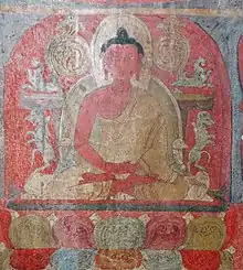 Most Tibetan Buddhist monasteries, temples and other religious structures in the Himalayas were decorated with Tibetan Buddhist wall paintings. Despite much destruction in Tibet itself, many of these survive, the dry climate of the Tibetan plateau assisting their survival, as the wet Indian climate has reduced survival of paintings from there. There are some regional differences, but the techniques described here cover the traditional wall paintings across this area. The wall paintings were executed on earthen plaster with the secco-technique.[1] A secco-technique is a painting technique in which the pigments with their binder are employed to paint onto a dry (Italian: secco) wall.