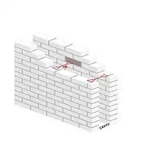 The tie in a cavity wall is a component used to tie the internal and external walls (or leaves)—constructed of bricks or cement blocks—together, making the two parts to act as a homogeneous unit. It is placed in the cavity wall during construction and spans the cavity. The ends of the tie are designed to lock into the mortar. Also incorporated into the design of the tie is means of preventing water transfer from the outer to the inner leaves. In flat ties, this can be a twist. In wire ties, this can be corrugations formed in the wire or again a twist.