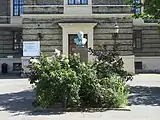 The garden strip along the Ny Carlsberg Glyptotek features a number of monuments and other artworks that faces the street. These include a statue of the archeologist Georg Zoëga by Ludvig Brandstrup. The monument is flanked by two statues by Constantin Meunier, The Harbour Worker (left) and The Sower /right). A little further down the street, on a narrow lawn in front of the museum's Hack Kampmann Wing, stands a vronze statue of a standing woman, Guapa, created by Gottfred Eickhoff in 1951.