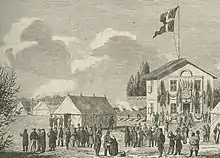 A social shooting event at Enighedsværn seen on an illustration from Illustreret Tidende'