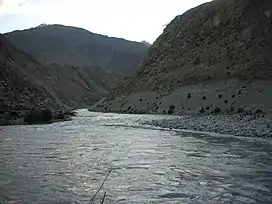 Tiger hill (highest mountain seen in the background) as seen from the River Drass in Kargil.