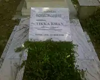 - 1 2 General Tikka Khan's Headstone (Headstone in graveyard). Army Graveyard, Rawalpindi, Pakistan. 2011.