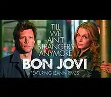 The music video for "Till We Ain't Strangers Anymore" features Jon Bon Jovi and LeAnn Rimes walking around the streets of New York City at night.[4] A bed scene was set up in front of the Flatiron Building.[2] The song was also nominated for the Academy of Country Music Award for Vocal Event of the Year.[5]