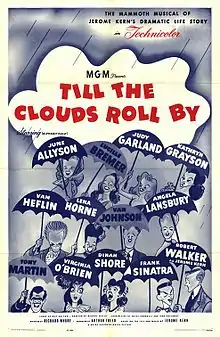 Till The Clouds Roll By is a 1946 American Technicolor musical film produced by Metro-Goldwyn-Mayer and a fictionalized biopic of composer Jerome Kern, portrayed by Robert Walker. Kern was involved with the production, but died before its completion. It was the first in a series of MGM biopics about Broadway composers.[1]