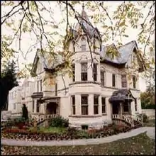• Vivian House: 300 Broadway St. From the slate roof to the decorative stained glass, stylish gingerbread and detail work under the eaves, trim on the two storey porch, and unique keyhole window on a side elevation, this house is a wonderful example of Victorian elegance.