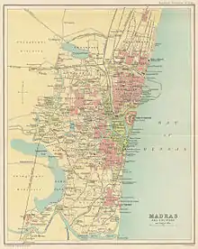 - ↑ Narasiah, K. R. A. (2016). Madras: Tracing the Growth of the City Since 1639 (1 ed.). Chennai: Palaniappa Brothers. p. 210. ISBN 978-81-8379-687-3.