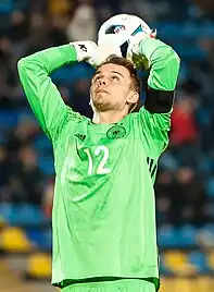 In August 2015, Wellenreuther was called up by Germany U21 for the first time.[32] He made his Germany U21 debut on 3 September 2015, starting the whole game, in a 2–1 win over Denmark U21.[33] However, the following year, Wellenreuther was expected to be included in the Germany U23 squad to follow Leon Goretzka and Max Meyer but was dropped from the squad after Schalke 04 did not give the DFB the clearance to allow him to join the squad for the Summer Olympics.[34]