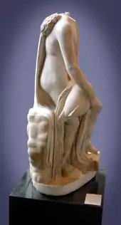 To him is attributed[3] a sculpture of Leda and the Swan in which the queen Leda of Sparta protected a swan from an eagle, on the basis of which a Roman marble copy in the Capitoline Museums[4] is said to be "after Timotheus". The theme must have been popular, judging by the more than two dozen Roman marble copies that survive.[5] The most famous version has been that in the Capitoline Museums in Rome, purchased by Pope Clement XIV from the heirs of Cardinal Alessandro Albani. A highly restored version is in the Museo del Prado, and an incomplete one is in the Yale University Art Gallery, New Haven, Connecticut.